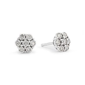Cluster Stud Earrings with 0.10 Carat TW of Diamonds in Sterling Silver