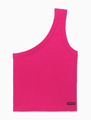 Solid One Shoulder Ribbed Knit Tank Top