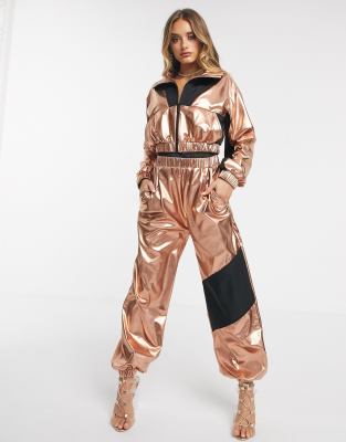 ASOS DESIGN metallic tracksuit jogger