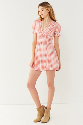 UO Molly Smocked Gingham Mini Dress