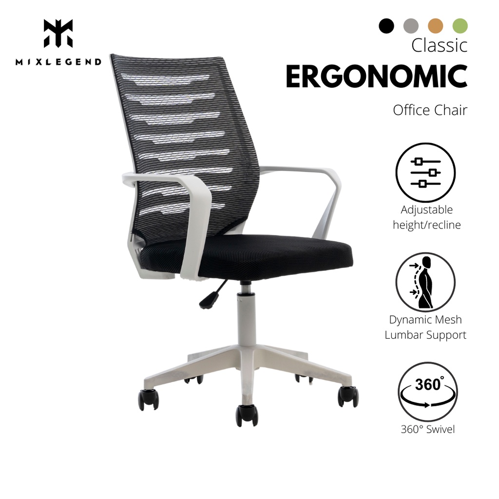 Ergonomic Classic Office Chair with Mid Mesh Back, Height Adjustable Chair | Shopee Singapore