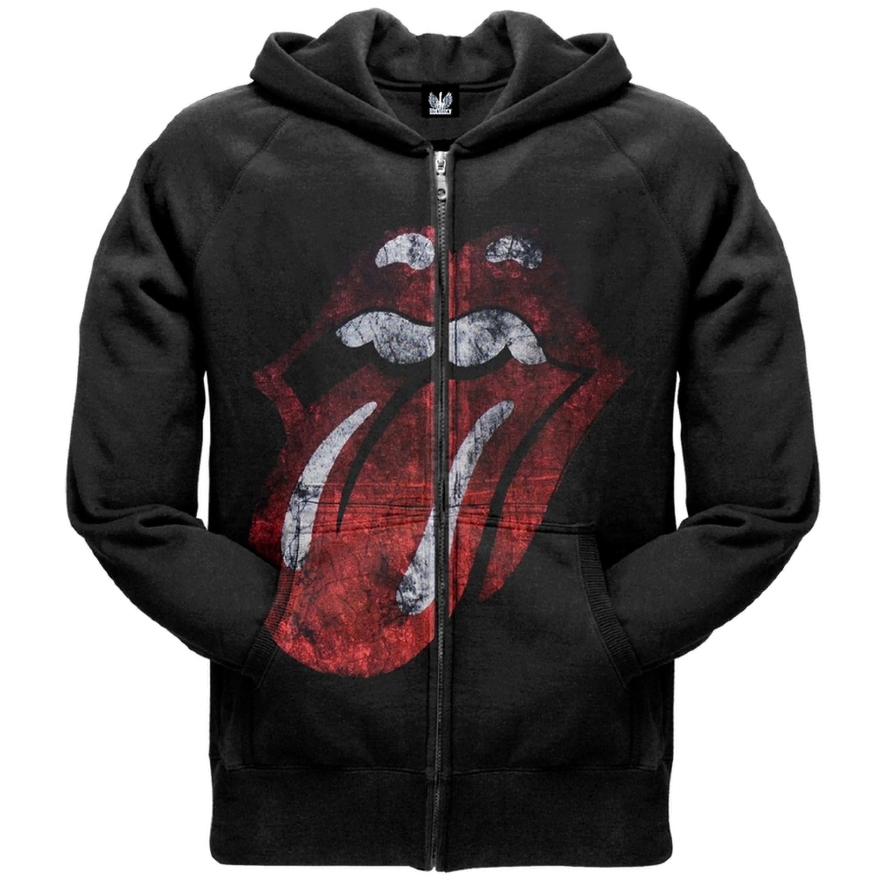 Rolling Stones - Rolling Stones - Distressed Tongue Zip Black Hoodie - Walmart.com - Walmart.com